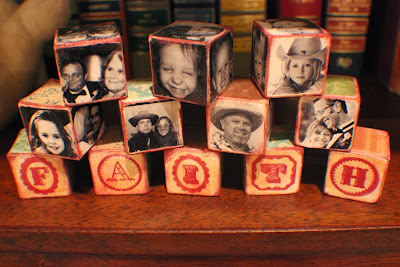 So Mother's day this year I wanted to make something that included photos. I found an amazing tutorial (see below) via stumbleupon (best site EVER!) of how to make photo wood blocks. So after going through pictures of my four sisters, mom, dad, uncle and eleven (yes, ELEVEN) nieces and nephews...I came up with this: